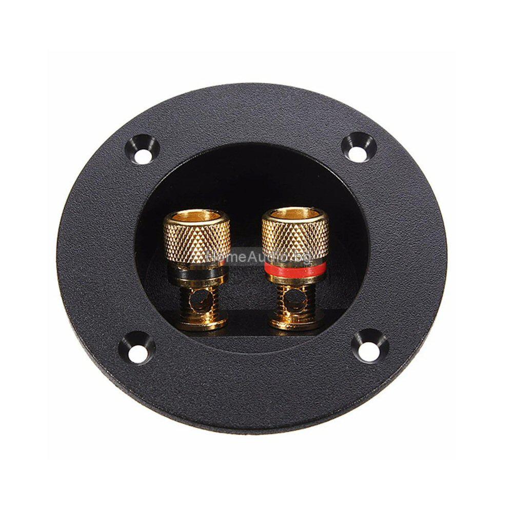 Конектор F-390G, двоен терминал за говорители, за монтаж към панел, позлатени метални конектори, черен